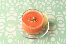 器に注ぎ、トッピング用の野菜をのせて、レモンのくし切りを添える。 |