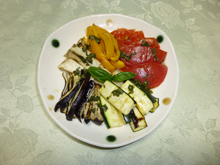 耐熱皿に野菜を並べ、170度のオーブンに入れ、焼き目がつくまで焼く。 |