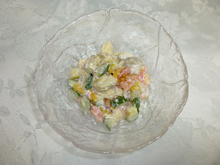は湯むきして半分に切り、種の部分は除いてから1p角に切る。