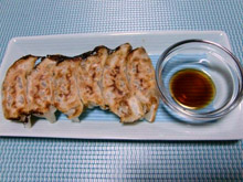 フライパンを熱して油をひき、ぎょうざを並べ中火で焼く。ぎょうざの皮の底にうっすら焦げ目が付いたら、熱湯を加えて蓋をし、水気が無くなるまで約10分蒸し焼きにする。仕上げに蓋を取り水気を飛ばす。 |