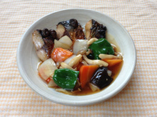 よく混ぜたAを鍋に入れ、とろみをつけて甘酢あんを作り、Cを加える。 |