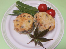 シャキッとしたれんこんとジューシーな 肉が味わえるハンバーグです。