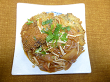 皿にミンチカツを盛り付け、Aの野菜ソースをかける。 |