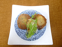 皿にミンチカツを盛り付け、Cを添えてぽん酢をかける。 |