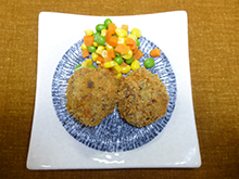 皿にミンチカツを盛り付け、Dを添える。 |