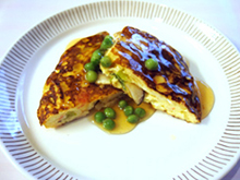 裏面もこんがり焼けたら切り分け、皿に盛る。 |