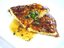 裏面もこんがり焼けたら切り分け、皿に盛る。 |