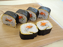 Aの酢飯にBの大根をよく混ぜ合わせ、2等分にする。 |