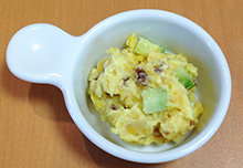 は皮をむき、4〜5つに切り、鍋に入れてかぶるくらいの水を加え、中火で軟らかくなるまで茹でる。ボウルに入れてフォークでつぶす。