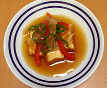 生揚げに甘酢あんをかける。 |