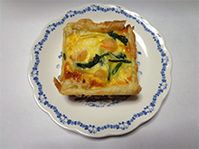 パイ型にFを流し入れ、180℃のオーブンで30分ほど焼く。 |