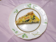 パイ型にFを流し入れ、180℃のオーブンで30分ほど焼く。 |