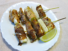 焼く時には、竹串にアルミホイルを巻いておくと、焦げずにきれいに仕上がります。火加減や時間は、焼き具合を見ながら調節してください。