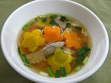 Aに@と飾り切りした島にんじんとにんじんを加え、さらに煮る。 |