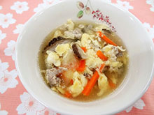 しいたけは水に戻して千切りにし、とうがん、にんじん、こんにゃくは豚肉の大きさに合わせて切りそろえ、こんにゃくは茹でておく。 |