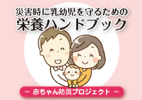 災害時における乳幼児の栄養支援に関する手引きの作成および周知、「災害時に乳幼児を 守るための栄養ハンドブック」を作成し、 自治体等を通じた周知や配布を行っています。