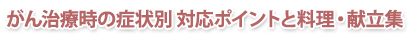 この「がん治療時の症状別 対応ポイントと料理・献立」は、専門分野別人材育成事業のがん分野におけるモデル研修への受講者より提出されたものより一部を掲載しています。様式・文章等、統一のため一部修正していますが、提出者の意図を重視し、原則、提出されたそのままを掲載しています。また提供施設名については承諾がうけられた施設のみ表示しています。
