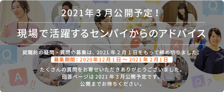 病院や企業、小学校など、7つの職場の7人のセンパイが登場、実際の仕事内容や職場の雰囲気などについてインタビューしました。