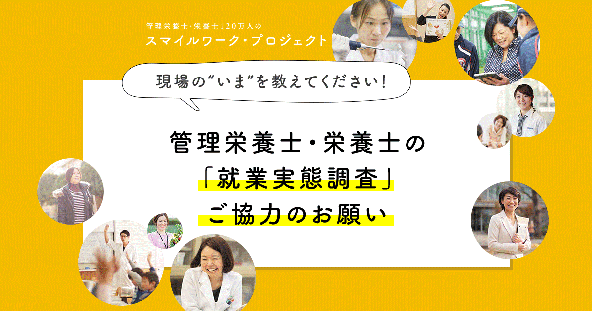 【受付終了】管理栄養士・栄養士資格取得者の就業実態調査ご協力のお願い「スマイルワーク・プロジェクト」
