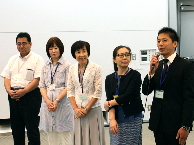 第2号議案「理事選任の件」では、平成28・29年度の役員の選任決議が行われ、新理事が選任されました(写真は新任理事の5名、左から塚田定信理事、渡辺啓子理事、海老原昌子理事、中川幸恵理事、星野記史理事)。