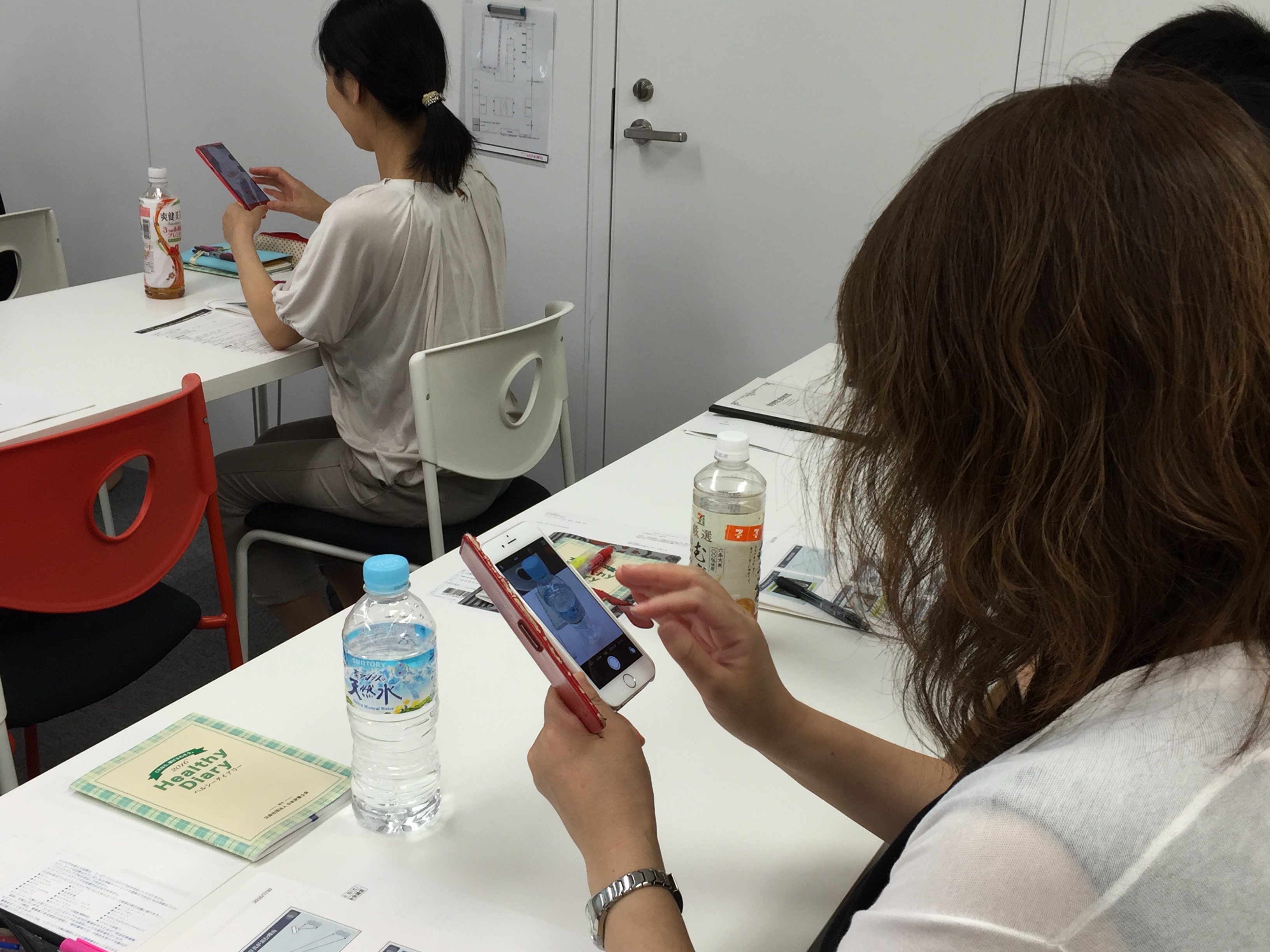 講義の中で、スマホやタブレットを用いて写真を記録する方法や料理をおいしく撮るポイントを解説をいただき、受講者もスマホを手にトライしていました。