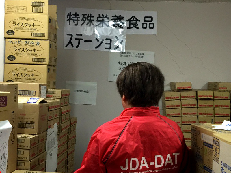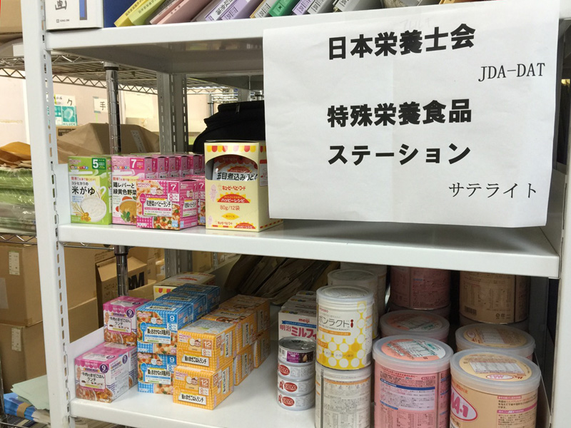 日本栄養士会は熊本県と連携し、被災地現地において「特殊栄養食品ステーション」を設置しています。