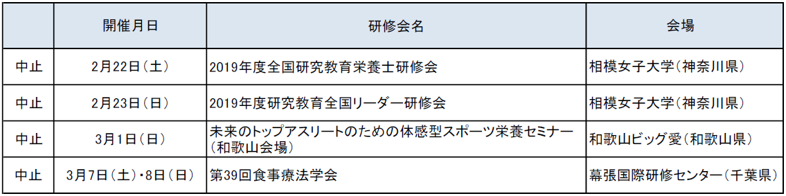 日本栄養士会主催研修会の開催中止に伴う参加費等の返金について(2020年3月18日現在)