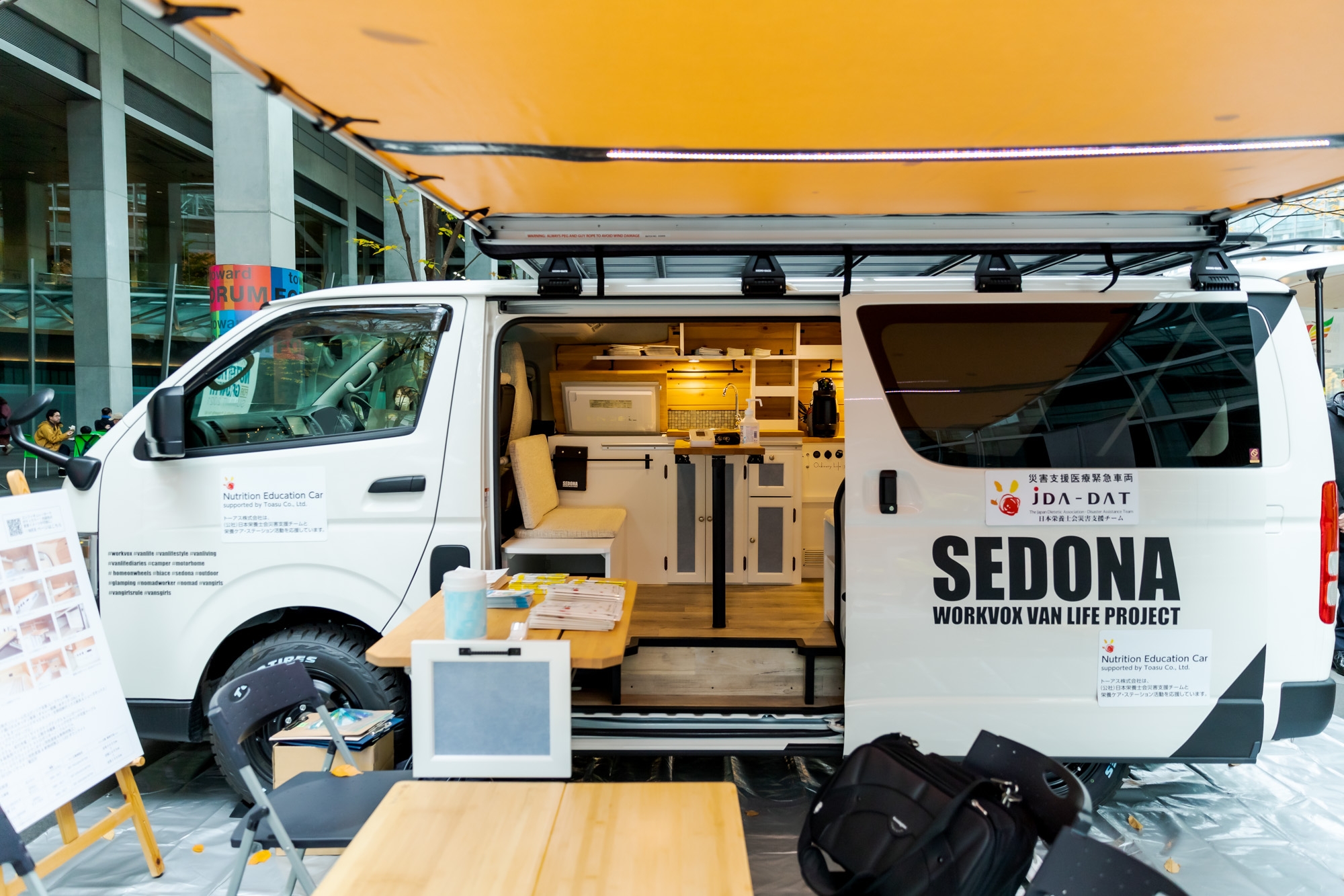 JDA-DAT号は、現在4台(軽ワゴン車3台とPHEV車両)を保有しており、そのうち2台の車両には、給排水装置を備えたミニキッチン(調理台)を搭載しています。