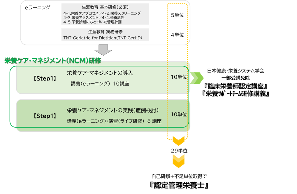 この「栄養ケア・マネジメント(NCM)研修」を修了すると、実務研修20単位が取得できます。受講した方は、次のステップとして、「認定管理栄養士」を目指せます!