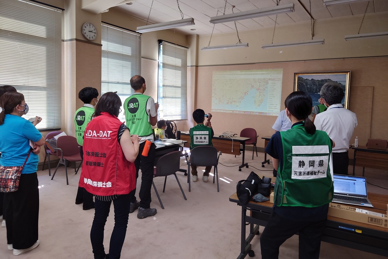静岡県では2020年度より、DMAT、DHEAT(災害時健康危機管理支援チーム)、保健師(静岡県健康増進課)、災害支援ナース(静岡県看護協会)、静岡JRAT(災害リハビリテーション支援関連団体協議会)、静岡DWAT(静岡県社会福祉協議会、県地域福祉課)により「静岡県災害保健医療福祉協議会」が設立され、2021年7月に発生した熱海市土砂災害に係る活動報告会を機に、静岡県栄養士会JDA-DATもその仲間に加わっています。