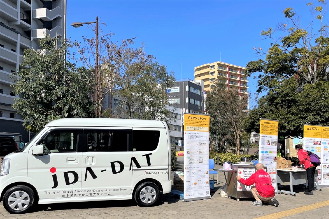 2023年3月4日(土)、5日(日)、東京都日野市のイオンモール多摩平の森にて開催された「防災フェス」に日本栄養士会災害支援チーム「JDA-DAT」が参加、広報活動の一環としてJDA-DAT号の展示を兼ねてブース出展しました。