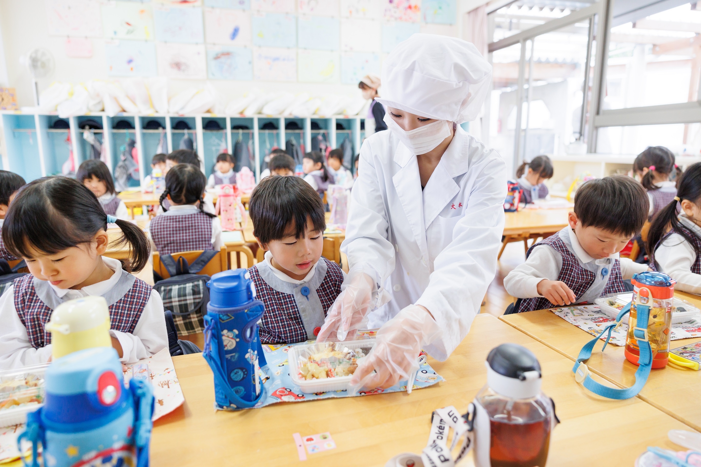 授業で敷地内の附属幼稚園に給食提供を行っています。献立作成、発注から調理まで、一連の作業を自ら行うことにより、栄養士として必要な技能を実践的に身につけることができます。さらに食品開発技術も学べます。