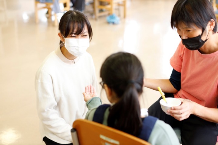 調理員さんたちだけでなく、先生方ともコミュニケーションをとることが食育をするうえで欠かせないです。現場に出てみて初めて、栄養学だけではなくて、コミュニケーションの重要さを実感しました。