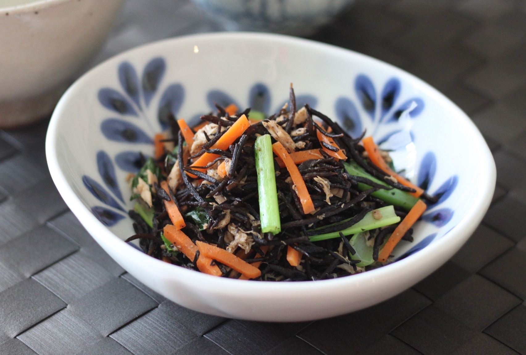 ① ひじきは水洗いして水でもどした後,よく洗ってザルにあげ、水をきる。