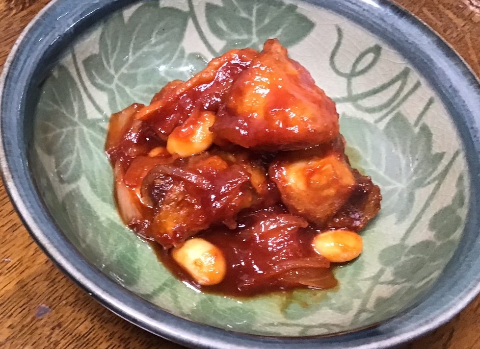 ③フライパンに油をいれて熱し、①を炒める。砂糖、淡口しょうゆを入れ、炒め合わせる。